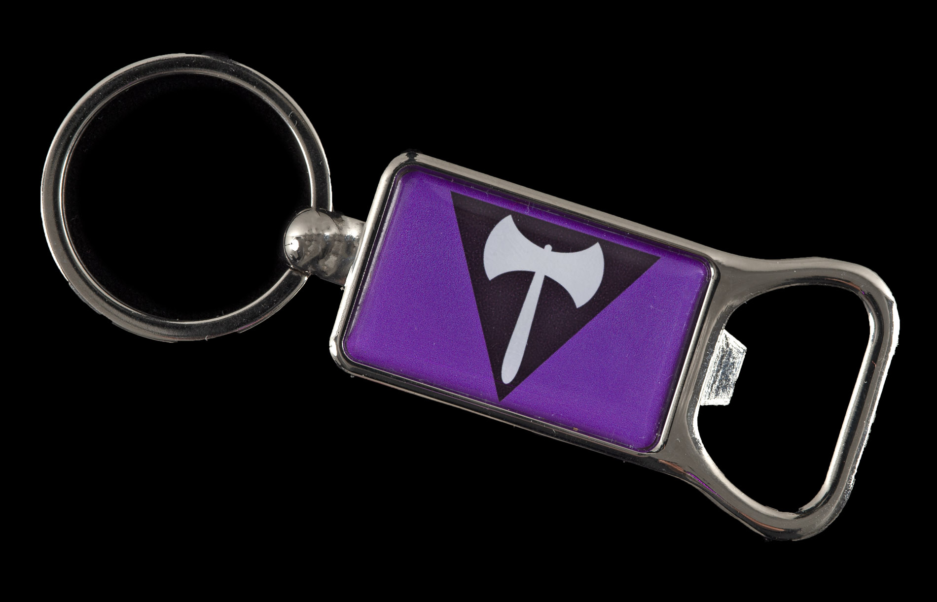 An Ancient Greek double-headed axe, the labrys has been a symbol of lesbianism since the 1970s, although the ‘official’ labrys lesbian flag – seen on the bottle opener/keyring in the exhibition - was not designed until 1999. The labrys was originally an important symbol of Minoan religion on Crete (c. 2700 – 1450 BC) and always belonged with female goddesses. Also associated with Amazons, it was later claimed as a symbol of women’s empowerment, inspiring many lesbian tattoos and accessories. Whilst the black triangle (reclaimed from Nazi Germany along with the pink triangle) remains popular, the usage of the labrys has waned in the queer community due its association with second wave lesbian feminism and TERFs (trans exclusionary radical feminists). However, new versions are emerging that incorporate elements of the trans flag to denote trans inclusivity.