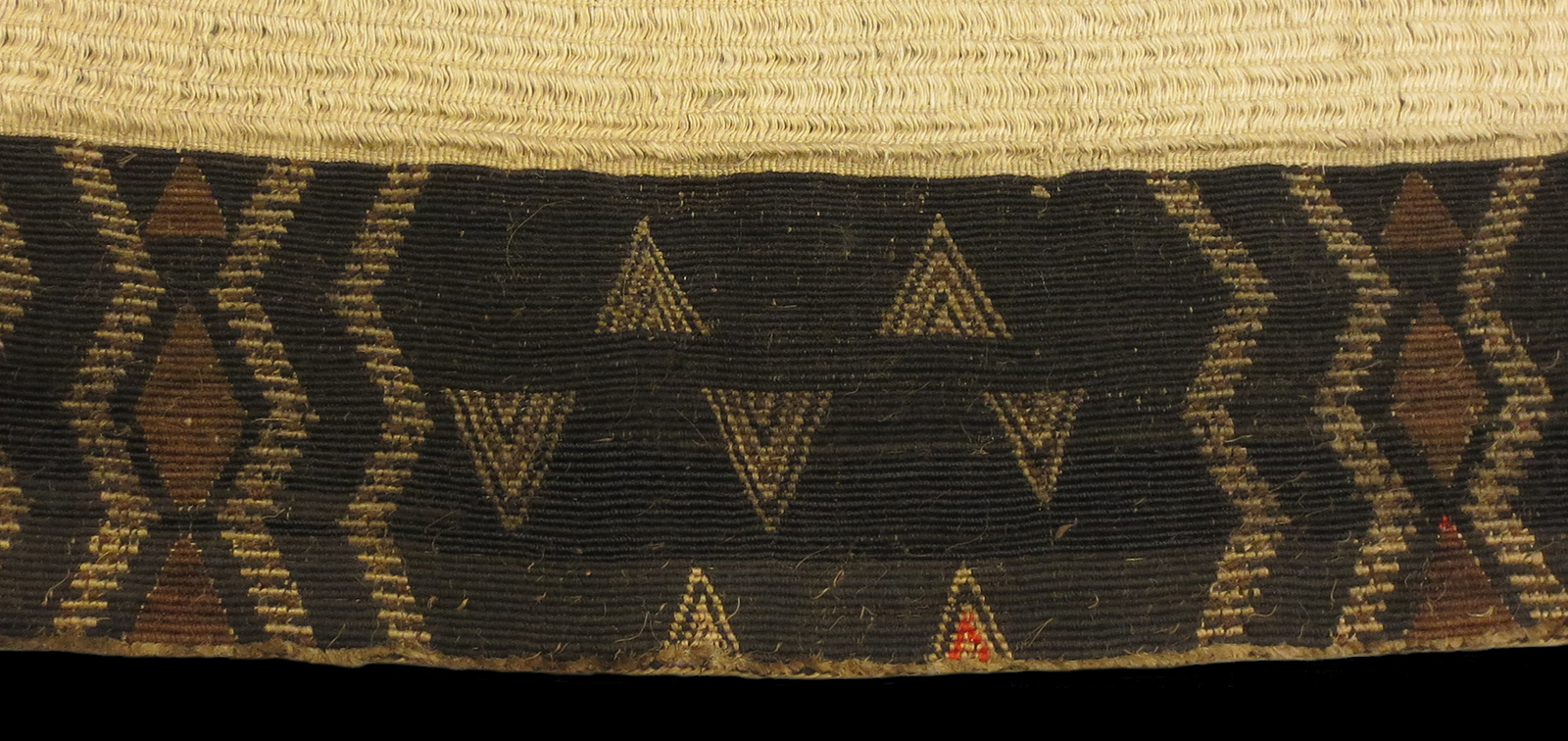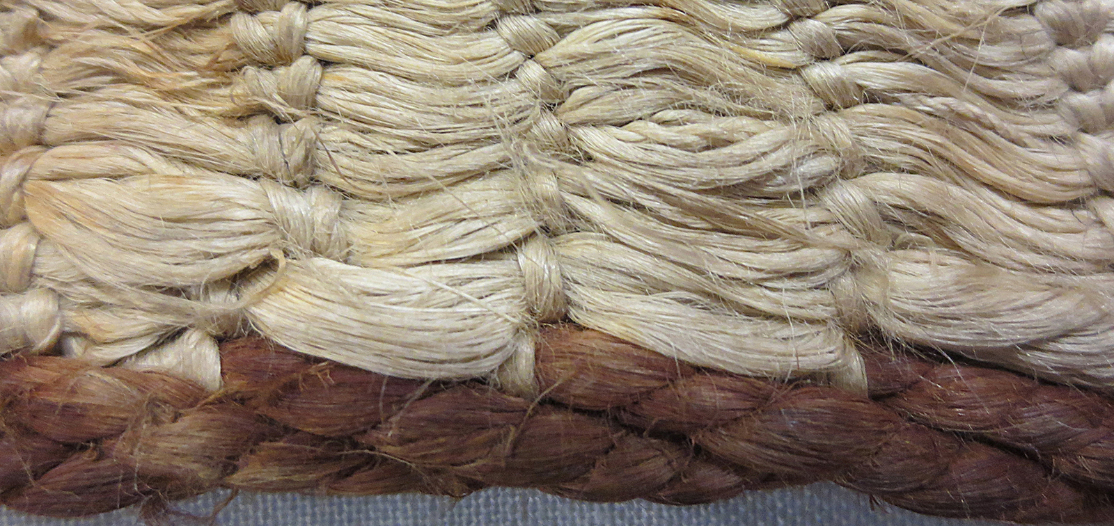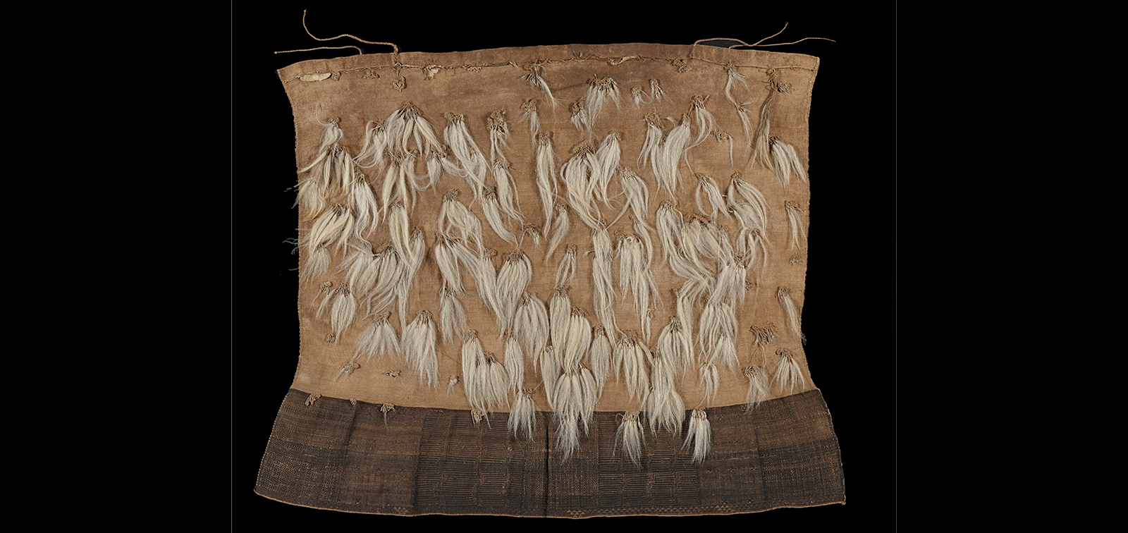 While the Museum has many cloaks made using traditional materials, we also have a number of examples that show evidence of the introduction of European materials into the cloaks' production. Wool began to be incorporatred into the garments as more Europeans travelled and settled in New Zealand. These 'introduced' materials often replaced some of the traditionally dyed fibres and provided a wider range of colours.