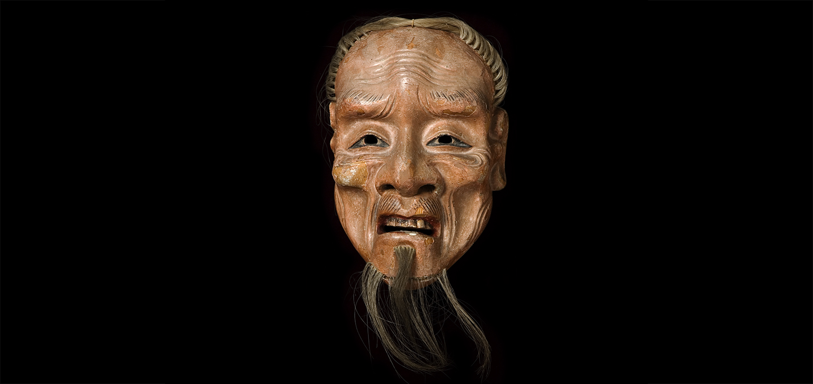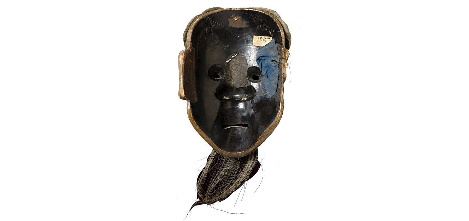The backs of the masks were finished in a number of ways, and makers would often add a carved or painted inscription. Given that the masks were used for performances over many years, they were also repaired and surfaces retouched. When in use it was common for successive actors to adapt the interiors of the maks to make a more comfortable fit by either sanding down or packing out certain areas. 38 of the masks were selected for redisplay based on type and condition.