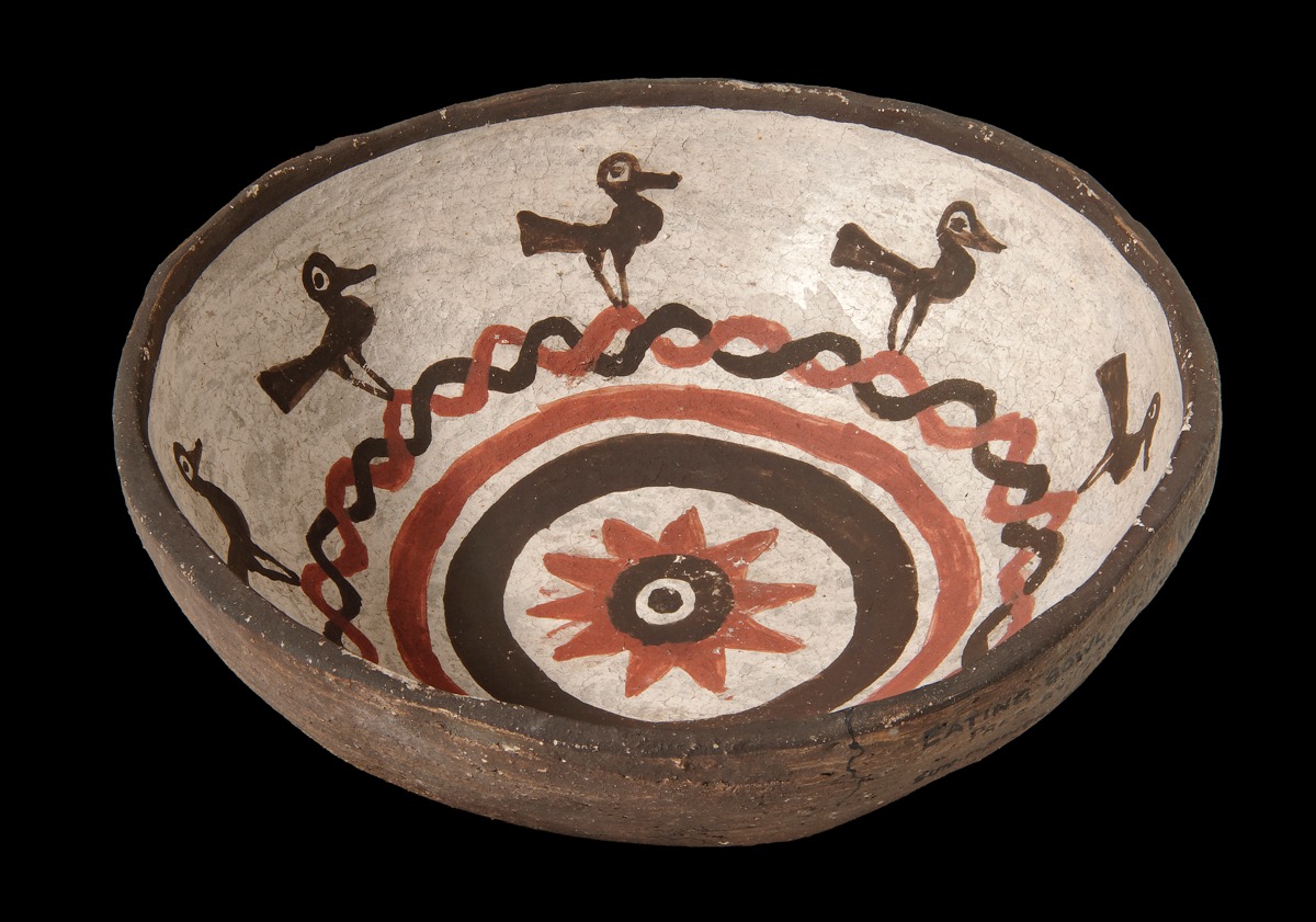 Hillers was a self-taught photographer who learned the techniques of the craft when he accompanied John Wesley Powell on his 1871 expedition to map the Colorado River. An important scientific figure and a powerful patron, Power subsequently became, in 1879, the first Director of the Bureau of Ethnology – established at the Smithsonian Institution ‘to organize anthropological research in America’ – and he took on Hillers as a staff photographer at a salary of $1,800 per year. (Two years later Hillers was transferred to the payroll of the U.S. Geological Survey, the Directorship of which Powell had by this time also been given.) Employed alongside the collector James Stevenson – and also anthropologist Frank Hamilton Cushing, who lived for five years with the Zuni – Hillers was charged to make an extensive photographic record of the historic pueblos and the archaeological ruins of the Southwest. Using the heavy and unwieldy equipment of the day, and recording his images on large glass plates, Hillers produced many scenes which have proved invaluable for generations of scholars and have at the same time exerted a strong pull on the American imagination. The mounted prints and two pottery vessels exhibited here were sent in June 1885 by John Wesley Powell himself to Professors Henry Moseley and Edward Burnett Tylor in Oxford, who later donated or bequeathed them to the Pitt Rivers Museum.