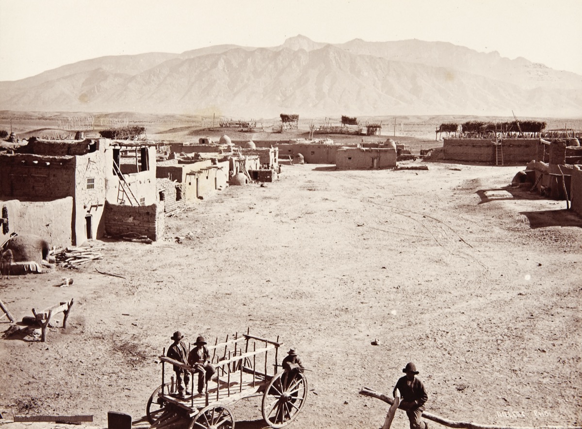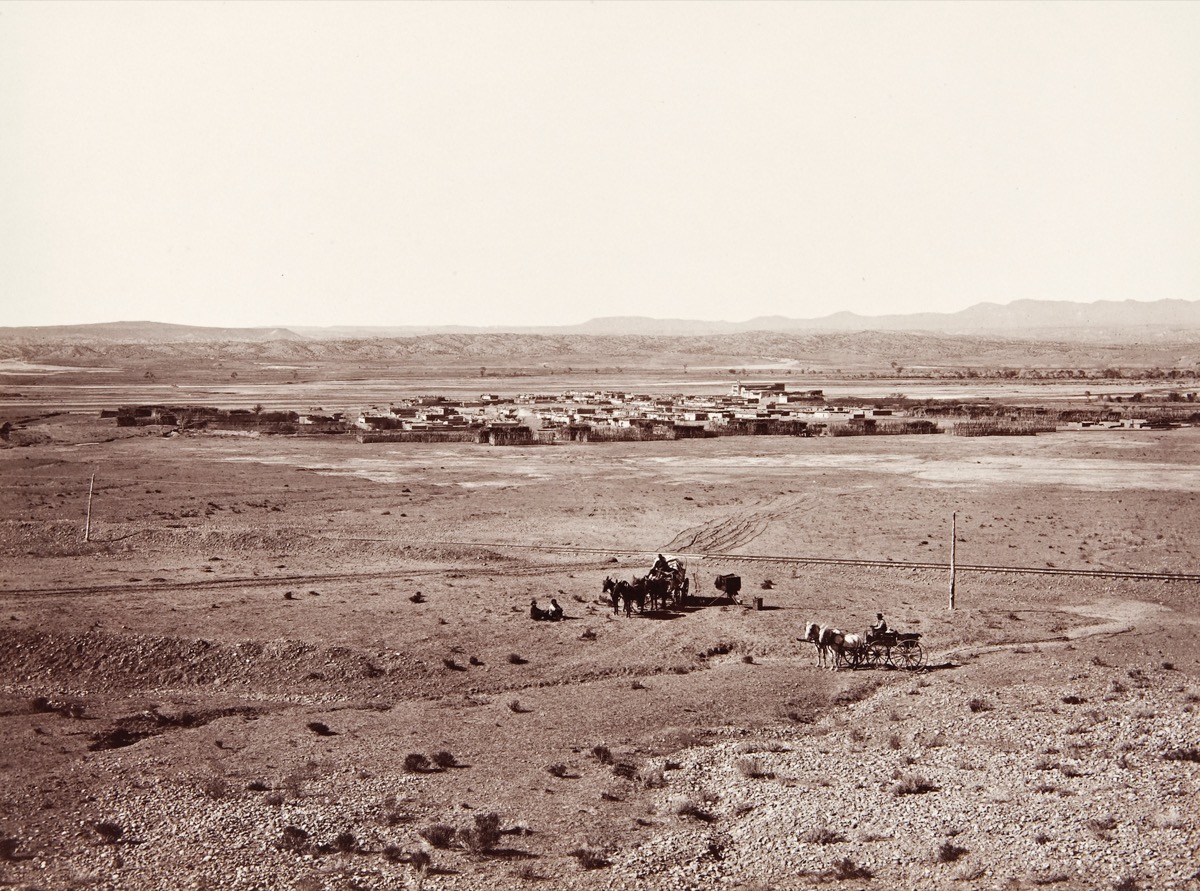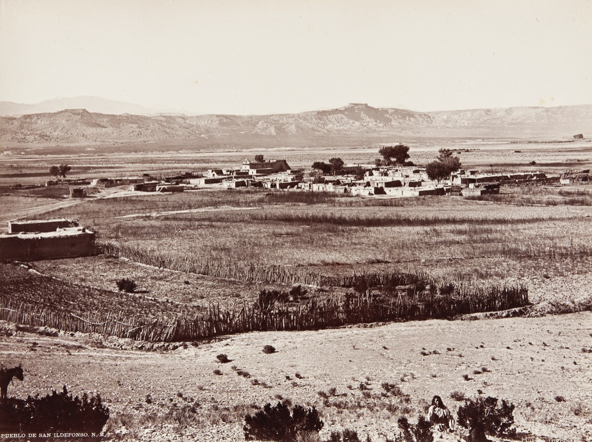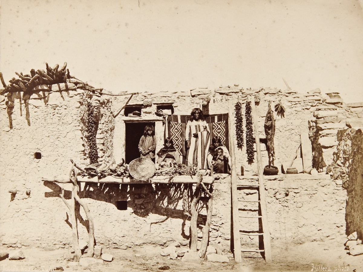 This case display presents eighteen original albumen prints by John Karl Hillers (1843–1925), pioneer photographer of the American Southwest. Born in Brinkum near Hanover, Hillers emigrated with his family to the United States in the 1850s and spent much of the next decade enlisted in the Fourth Artillery Regiment, seeing limited action during the Civil War. After his discharge from the army he worked a succession of jobs, including a stint as a boatman on the Colorado River, and from 1879 was employed as a photographer for the United States Geological Survey and newly established Bureau of Ethnology. His remarkable photographs of Zuni and Hopi pueblos in New Mexico and Arizona are among the earliest visual records made in the region, and they remain a reference point for the study of these cultures, documenting the numerous settlements and their inhabitants at the time of the ‘second opening’ of the West.