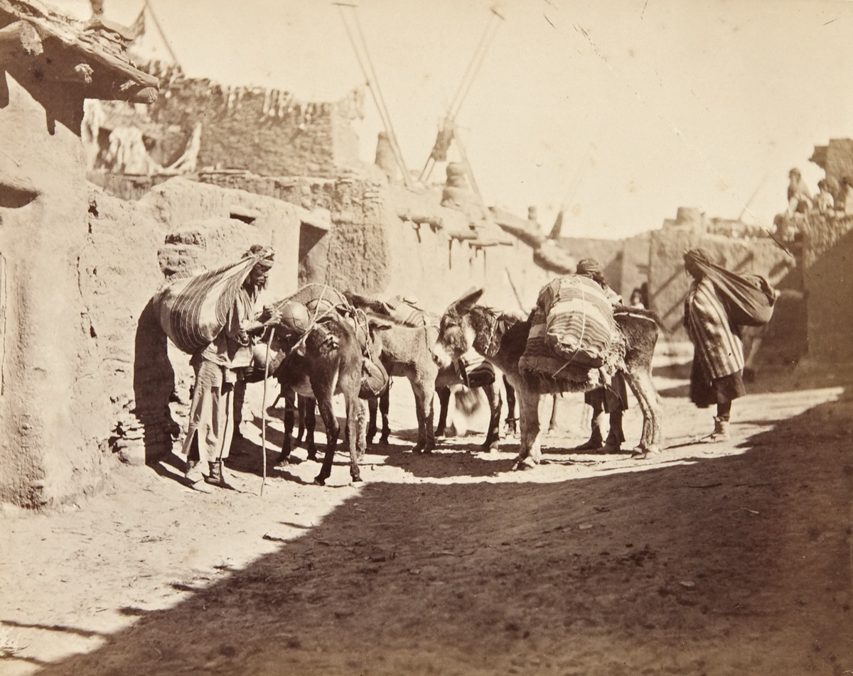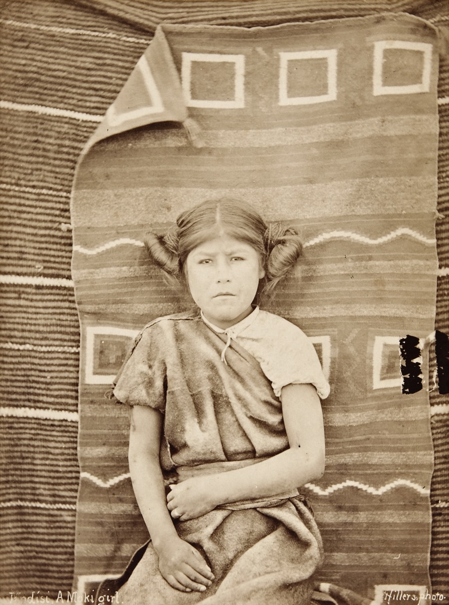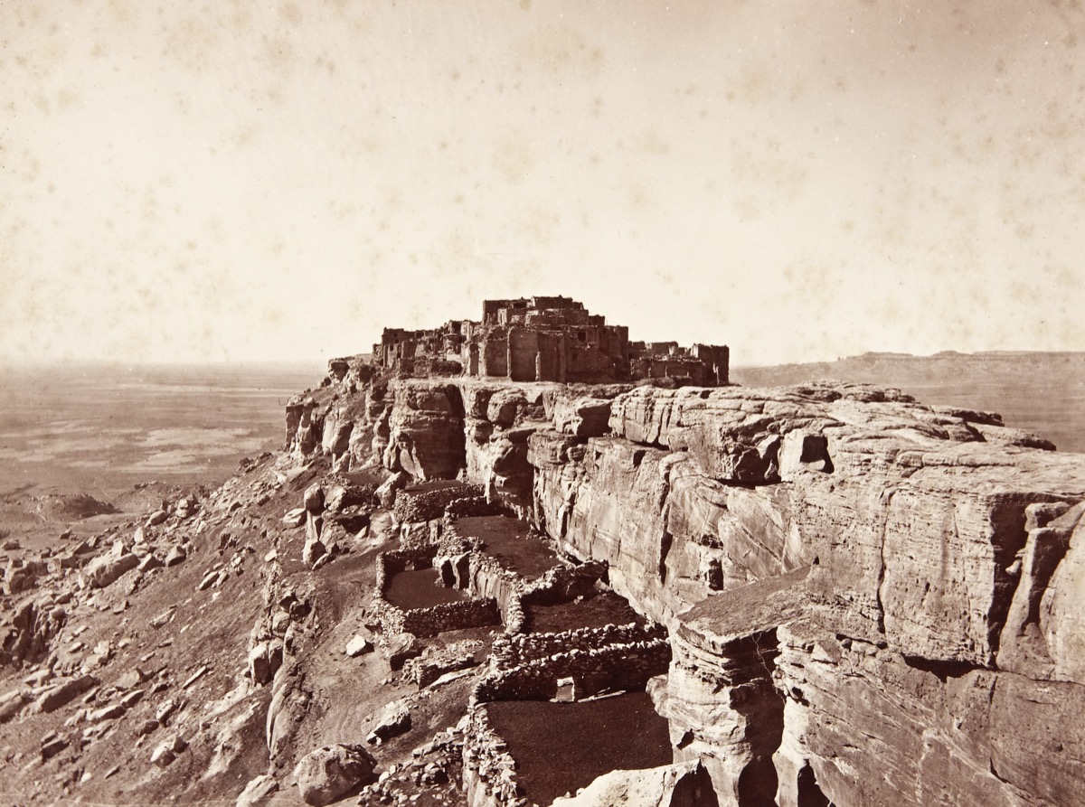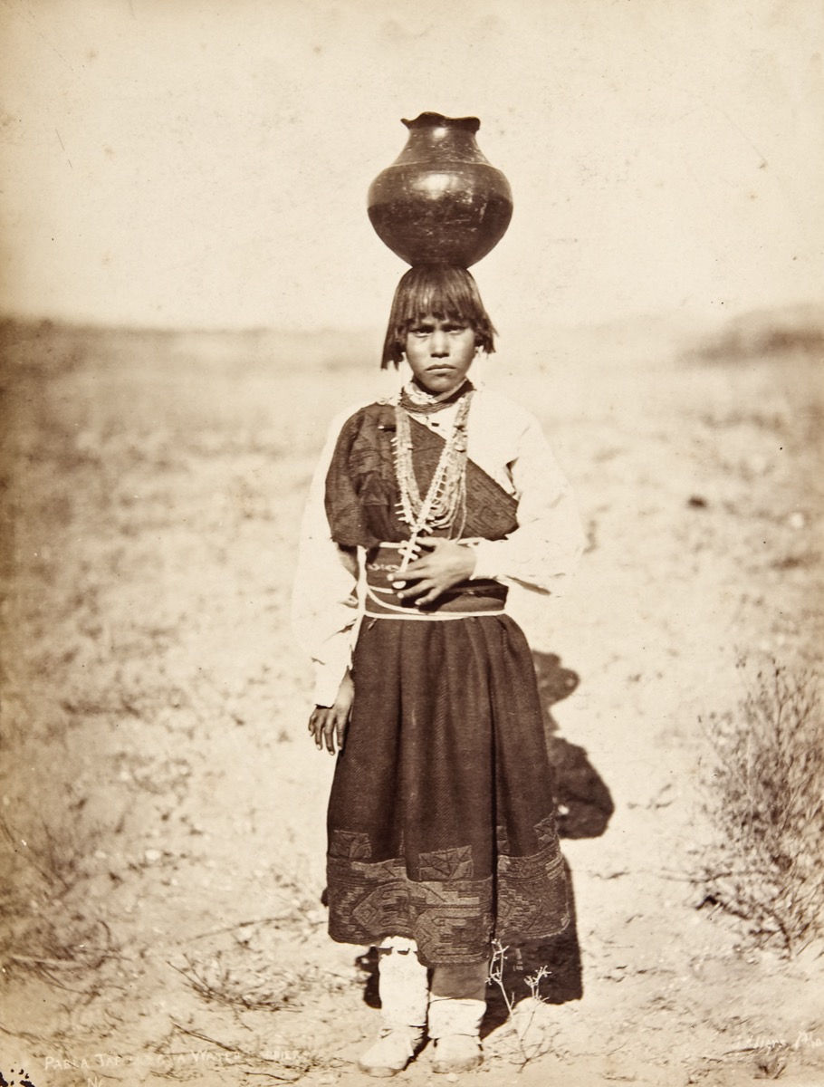 This case display presents eighteen original albumen prints by John Karl Hillers (1843–1925), pioneer photographer of the American Southwest. Born in Brinkum near Hanover, Hillers emigrated with his family to the United States in the 1850s and spent much of the next decade enlisted in the Fourth Artillery Regiment, seeing limited action during the Civil War. After his discharge from the army he worked a succession of jobs, including a stint as a boatman on the Colorado River, and from 1879 was employed as a photographer for the United States Geological Survey and newly established Bureau of Ethnology. His remarkable photographs of Zuni and Hopi pueblos in New Mexico and Arizona are among the earliest visual records made in the region, and they remain a reference point for the study of these cultures, documenting the numerous settlements and their inhabitants at the time of the ‘second opening’ of the West.