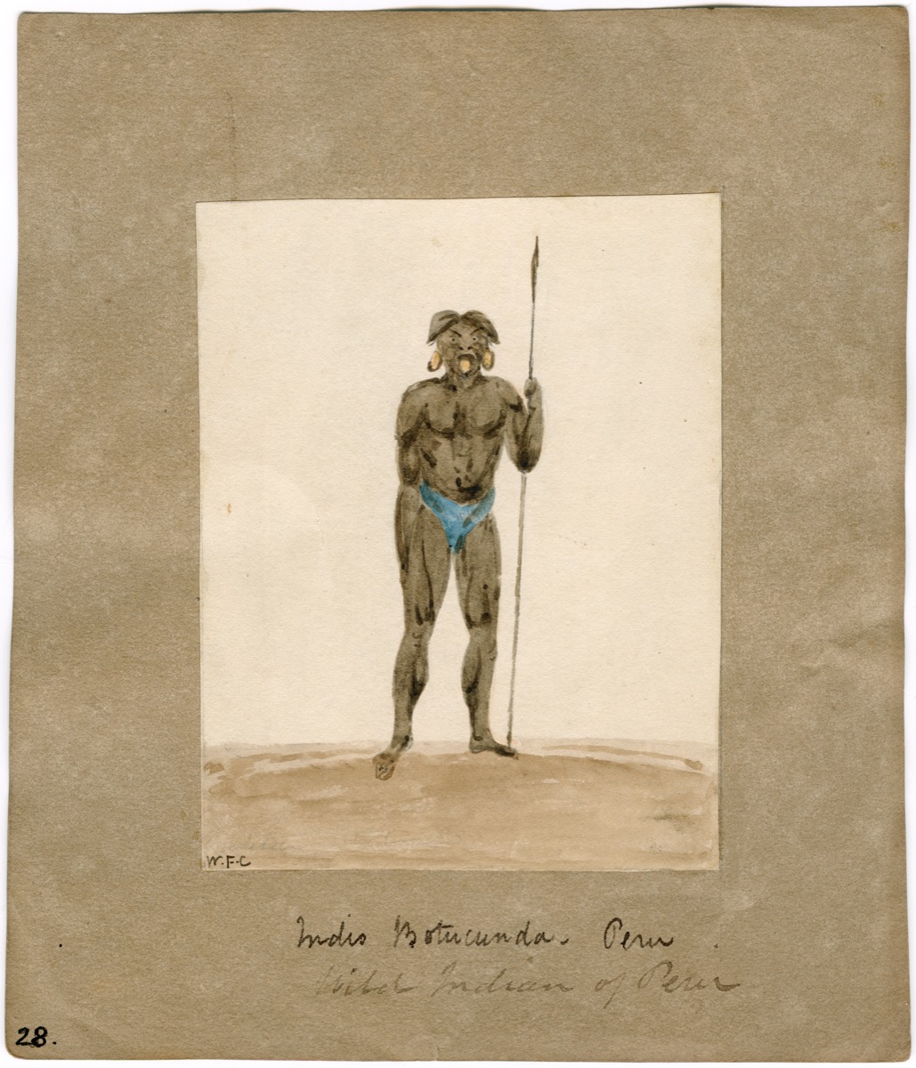 This collection of watercolours was given to the Pitt Rivers Museum in 1933 by a Miss Wakefield (or Miss Warwick, as the records vary) of Reigate. They are examples of costumbrismo, a genre of painting with Spanish origins that became popular in South America in the early 19th century. In such paintings, regional types are represented, the standard format being single figures painted against plain backgrounds on single sheets.