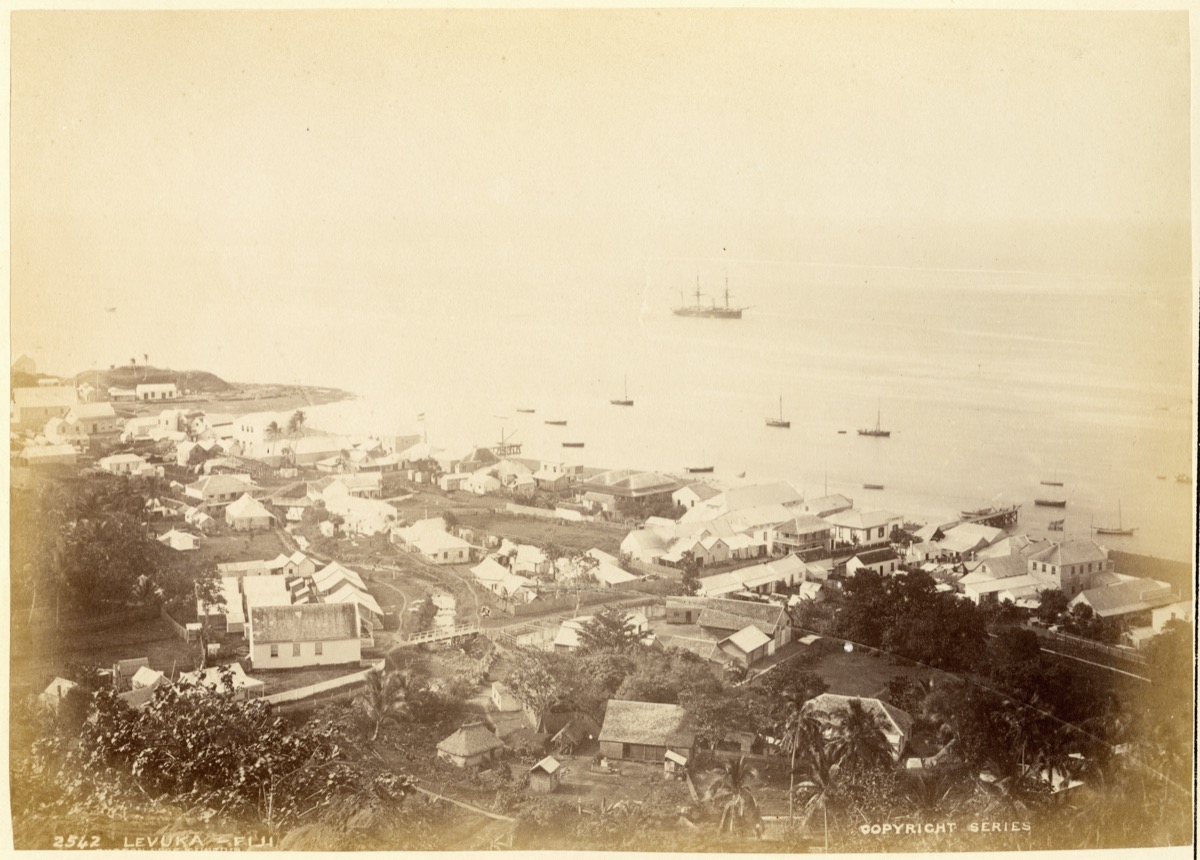 Also displayed are eight presentation prints from a series titled ‘The Camera in the Coral Islands’ (Fiji, Samoa and Tonga). Taken by Alfred Burton during voyages of 1884, the photographs show people and places in and around the main ports of Fiji, including the former capital Levuka, together with one striking group portrait of passengers on board the S.S. Wairarapa. ‘The idea of photography has certainly not hitherto been associated with the South Sea Islands’, wrote The Otago Daily Times, ‘but the recent cruises of the “Wairarapa” have changed that, and the untravelled public of New Zealand will now have an opportunity of acquiring the same distant acquaintance with Fiji and the more remote islands that they have already acquired with the lake and mountain scenery of our own Colony.’ The set of prints was donated to the Pitt Rivers Museum by Prof Sidney H. Vines in June 1921.