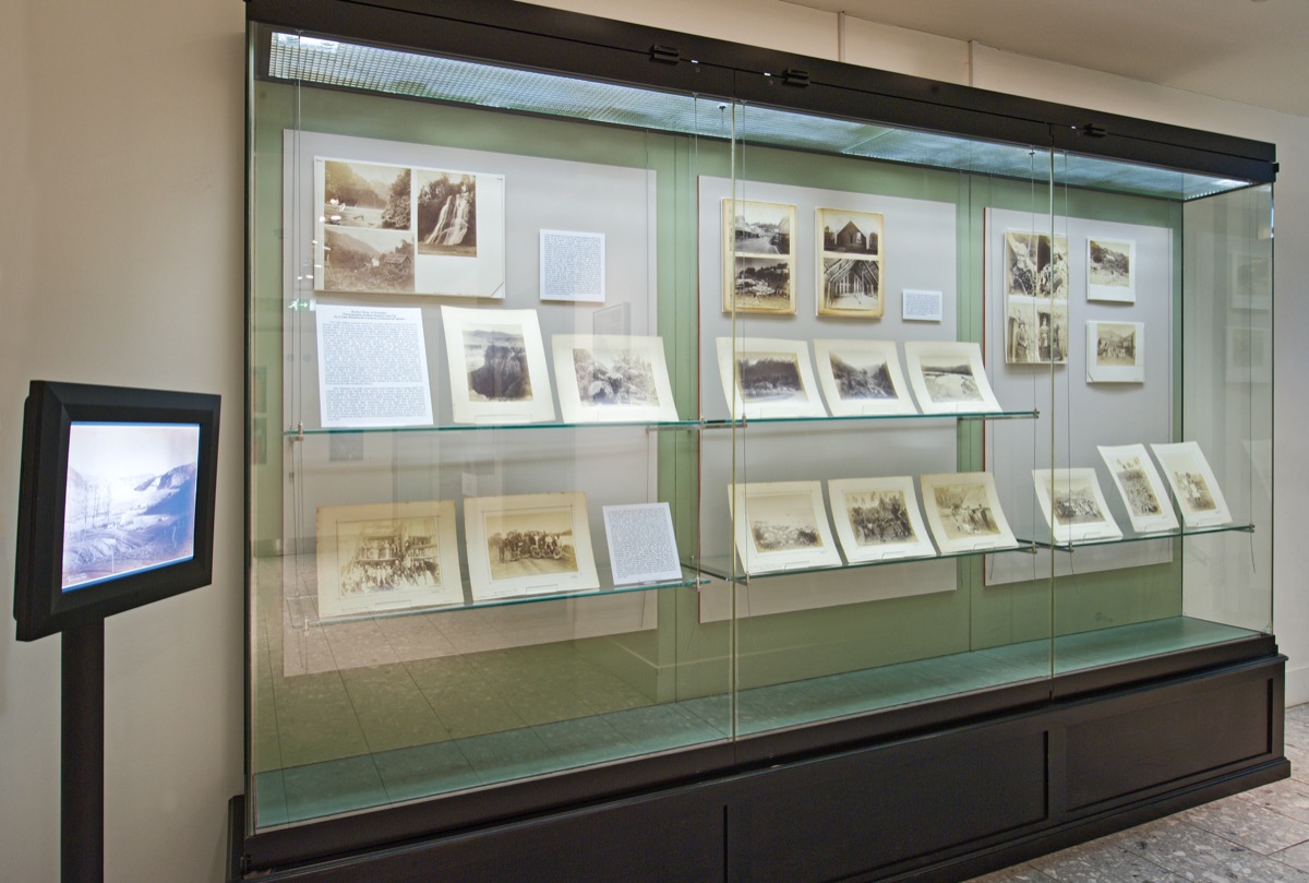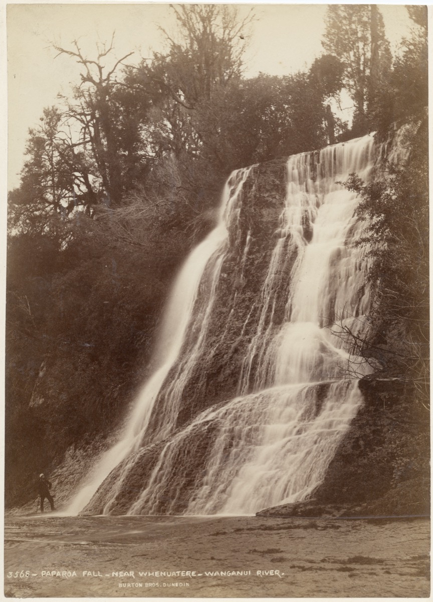 This case display presents twenty-six mounted albumen prints by the Burton Brothers studio of Dunedin, New Zealand. Established as a commercial venture in the late 1860s, not long after gold had been discovered in Otago, the studio rose to prominence in the growing provincial capital, gaining a reputation among a new middle class – as well, increasingly, as the expanding tourist trade – for the quality and sheer range of its spectacular landscape photographs. Taken by Alfred Henry Burton (1834–1914), elder of the two brothers, using the most advanced technology and latest equipment, the photographs reveal an undiminished landscape and native habitat which was still being discovered by the settler population, a fascination which continues to this day. Labelled in the negative with essential location details and a sequential numbering system, the photographs were sometimes advertised for sale in printed catalogues, enabling one to establish, in conjunction with other documents, a remarkably accurate chronology for the Burton Bros.’ output. The studio’s period of greatest activity was in the mid-1880s, for example, when Alfred Burton rapidly expanded the company’s stock of negatives, travelling widely across the country, on both North and South Islands, at a time when the photographer’s work was also that of explorer, adventurer, pioneer. He also photographed New Zealand’s indigenous population, notably for a portfolio titled The Maori at Home (1885), which, in conjunction with his published diary, Through the King Country with the Camera, provides one of the earliest and most detailed accounts of the contemporary circumstances of the Māori. The prints here derive from several different collections of the Burton Brothers’ work held by the Museum, principally that of Charles Smith, resident at Te Korito on the Whanganui River during the late nineteenth century.