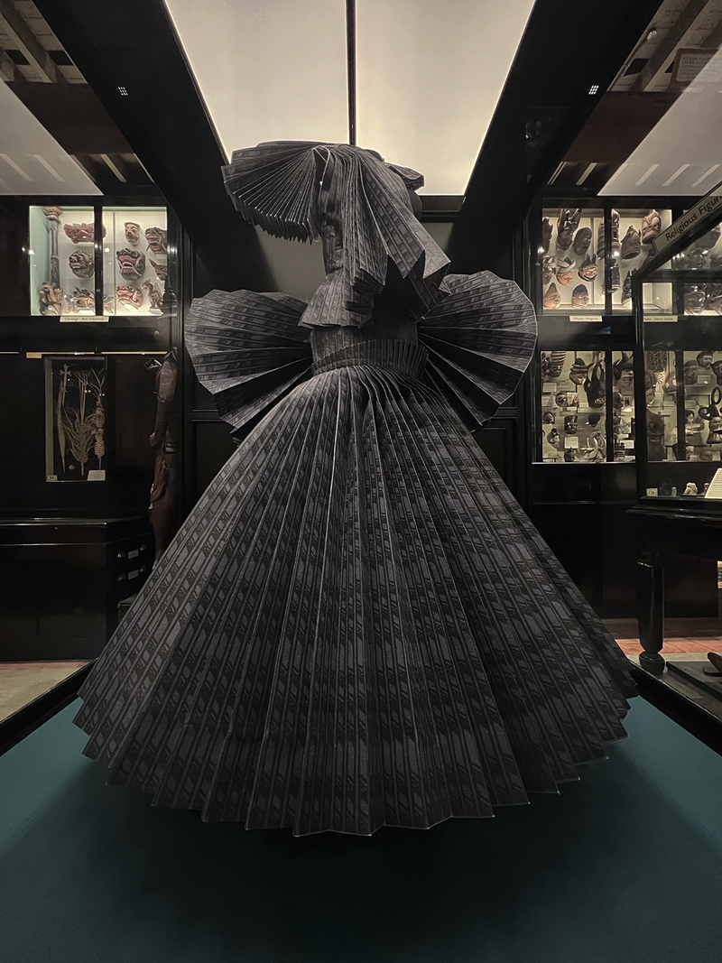 Discover the beautifully sculptural Hulu Nēnē dress by fashion icon Manaola Yap, a designer and cultural practitioner from Hawaiʻi, within the Pitt Rivers Museum galleries.