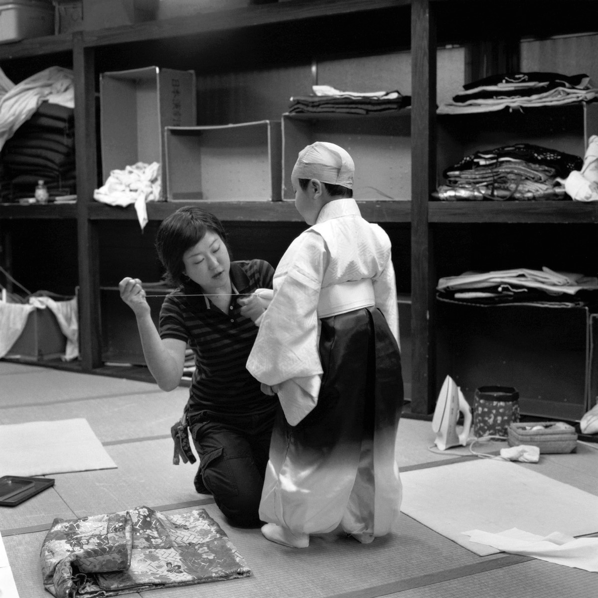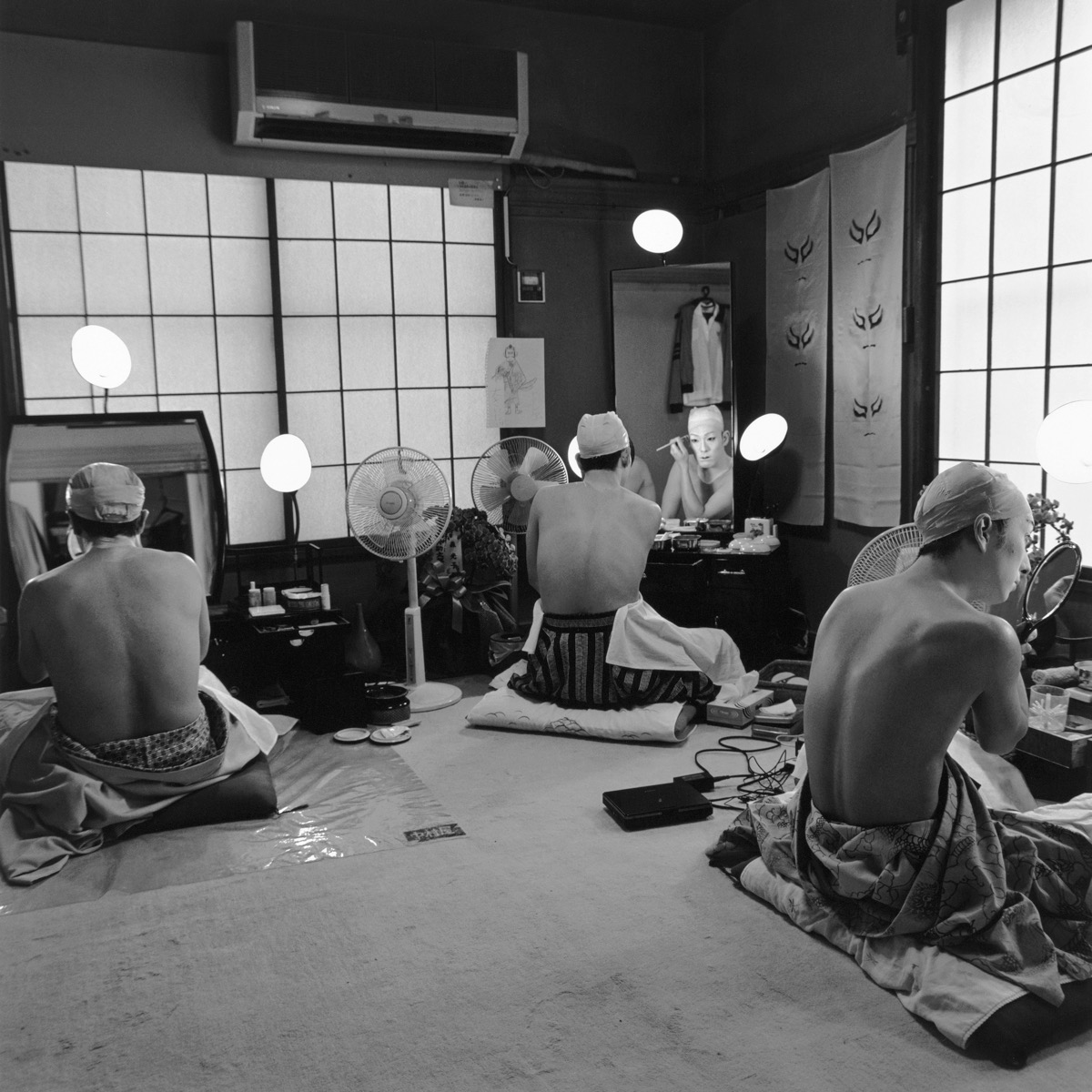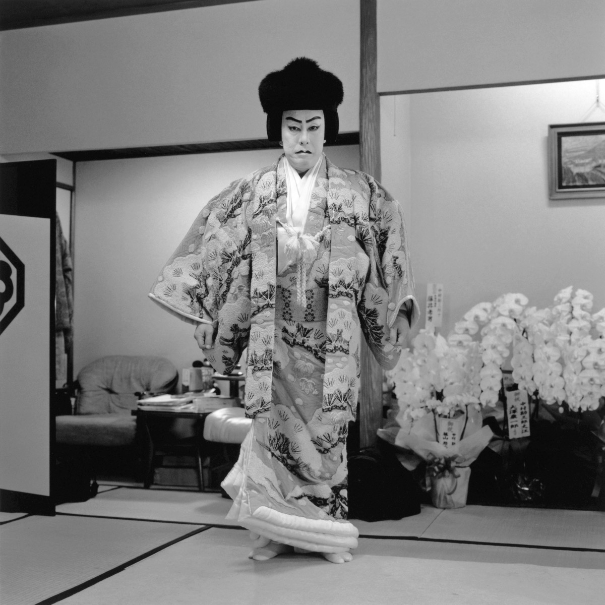 Akio Kushida is a Japanese photographer who for more than a decade has been developing an important body of work on the history and traditions of kabuki theatre. Married to one of the country’s leading directors, Akio has been granted rare and privileged access ‘behind the scenes’ of this dramatic form, allowing the viewer to glimpse the centuries-old traditions and inherited rituals as the actors prepare themselves for the stage. Her work focuses in particular on the important Nakamura family of actors, eighteenth and nineteenth generations of one of the most celebrated lines of kabuki performers, whose legacy continues with the success of their contemporary kabuki company Heisei Nakamura-za.
