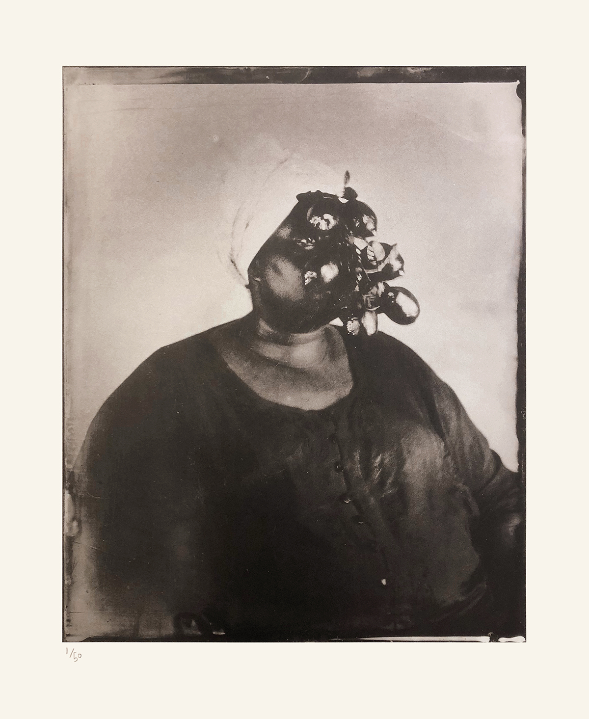 The prints exhibited here were produced from scans of the artist’s original tintype photographs. Tintypes are an early form of photograph, popular from the 1860s, created by exposing a negative image onto a metal surface coated with emulsion with a dark background so as to appear positive.