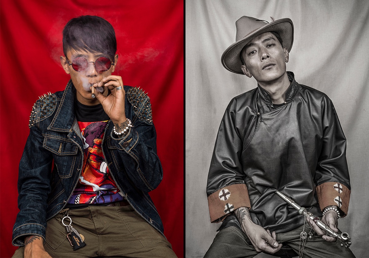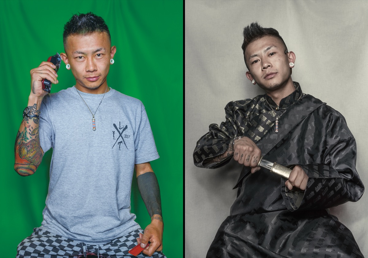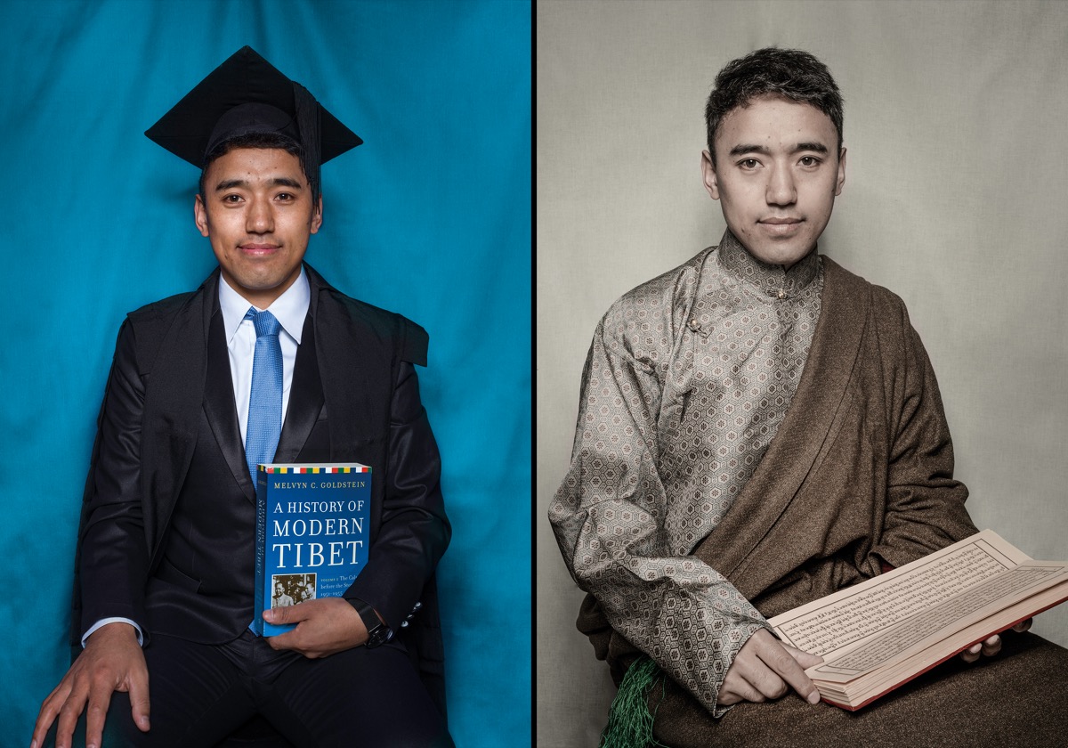 For Performing Tibetan Identities, Nyema photographed other young Tibetans, whether living in Europe as members of the Tibetan diaspora, or in Tibetan-speaking areas of China. Her pictures document the many things they share as global citizens and consumers of popular culture, as well as the particularities of their Tibetan heritage. By producing double portraits of each person, in daily wear and ‘traditional’ clothing, Nyema alludes to the fluidity of identity formation and how it may be expressed in dress and objects, revealing the range of options for self-fashioning that are available to contemporary Tibetans.