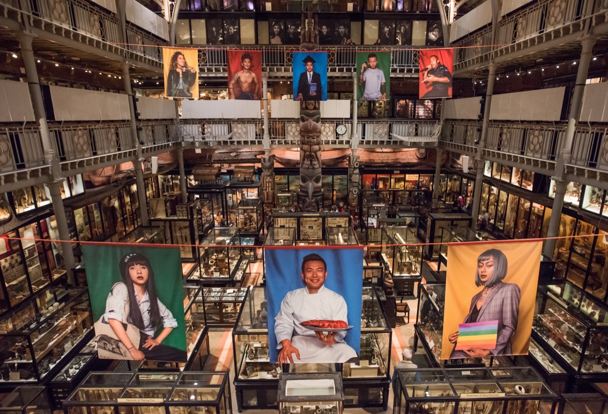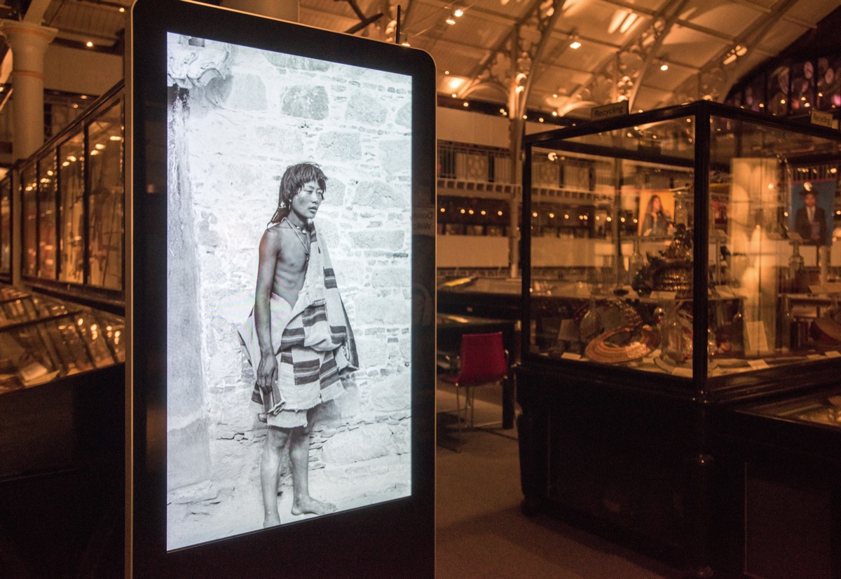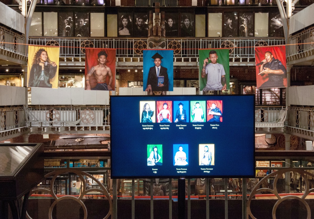 Digital displays are used for the first time in the main galleries of the Pitt Rivers to make examples of the material Nyema studied in the collections accessible to museum visitors. Large-scale photographs, with portraits of the same subject on each side, are suspended as banners in the heart of the museum in the style of a contemporary art installation but also emulating the prayer flags hung at Buddhist sites across the Tibetan-speaking world.