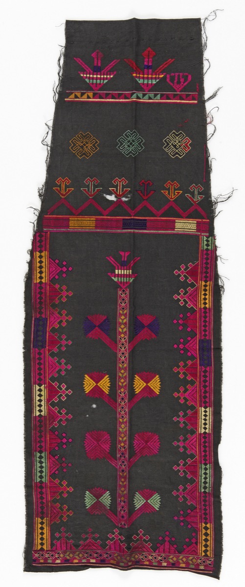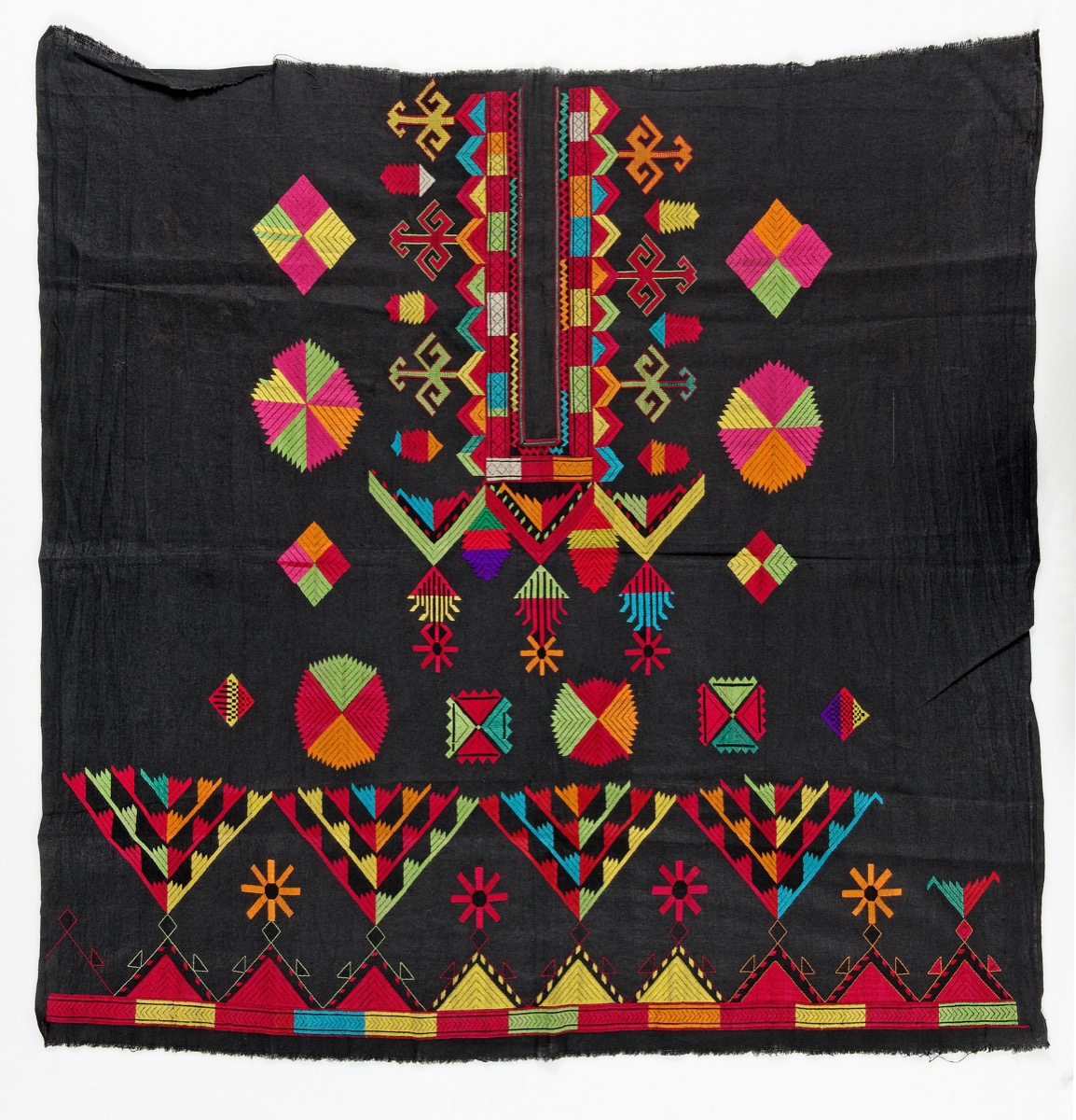 Born in 1929, Sheila Paine has been fascinated by embroidery since childhood and in the 1960s she studied embroidery at Hammersmith College of Art. After being widowed in her early forties and bringing up four children, she decided to dedicate the rest of her life to researching embroidery. She travelled extensively, recording and photographing embroidery techniques and their cultural contexts – seeing embroidery as the overlay of cultural significance onto the everyday necessity of cloth. At the same time she collected examples for further study. Today, these embroideries are held in a number of collections, including those of the Pitt Rivers Museum.