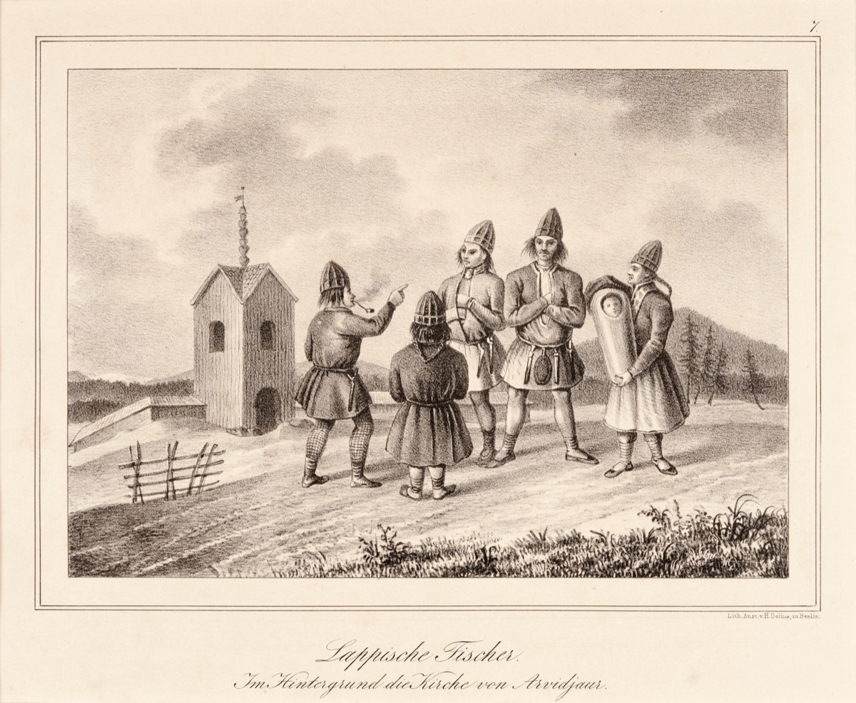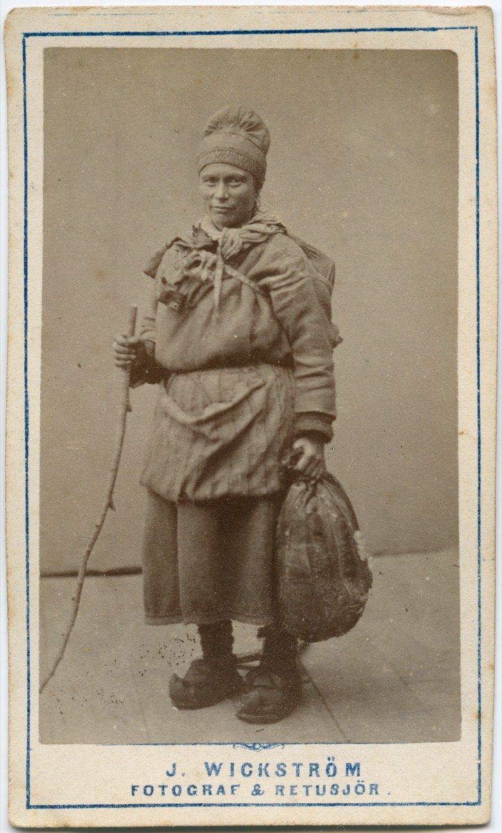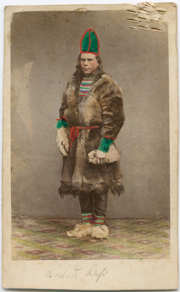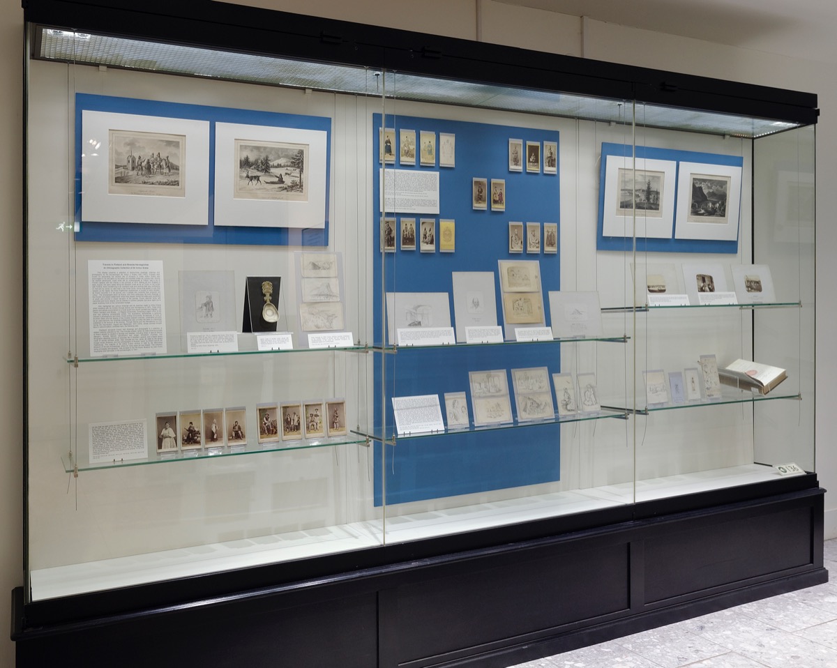 Displayed alongside Evans’ own drawings and photographs is a selection of related material collected by him. This includes sixteen cartes de visite showing portraits of Saami people by studios in Norway and Sweden, including those of Marcus Selmer (Bergen), Rosalie Sjöman (Stockholm) and Jørgen Wickstrøm (Tromsø); four lithographs depicting scenes of everyday life in Swedish Lapland; and a Saami spoon made of carved reindeer antler. Also included are four cartes de visite by the Ignacy Krieger studio (Krakow); and four photographs of Russian ‘types’ by Wiliam Carrick (St Petersburg). The majority of Sir Arthur Evans’ archive is held by the Ashmolean Museum of Art and Archaeology, where for many years he was Keeper. This collection, being principally ethnographic, was donated to the Pitt Rivers Museum by Joan Evans, biographer and half-sister of the archaeologist, in 1941.