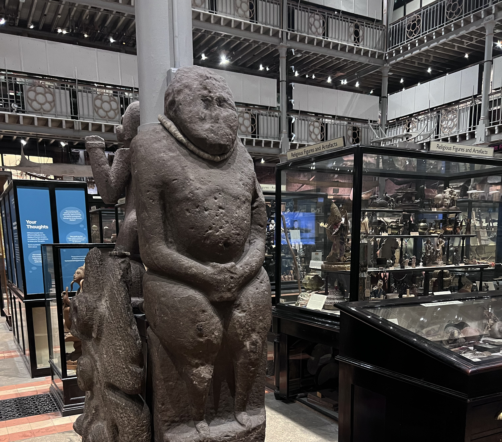 The Kamyana Baba at the Pitt Rivers Museum, created in the early 11th century and collected from its place of origin in the late 19th century, is a fragment of my home. The mysterious presence of the anthropomorphic stone babas colours the memories of my childhood in Dnipro in Eastern Ukraine — a city known as the “land of stone sculptures” that are scattered across the Eurasian continent, from Mongolia to Germany, but are especially common around the territory of my hometown. Facing the central avenue with its boutiques and heavy traffic, the collection of babas outside the Dnipro National History Museum stood on the doorstep of my school. They were immovable and solid, with faintly legible or totally vanished facial features, as though they were guarding with serene introspection something unspoken, unheedful of the bustle of Dnipro’s busiest street. Now, nine years since I left my hometown and six months into the unprovoked war initiated by Russia, I feel more called than ever to listen to the silence of the statues. While the war has indefinitely separated me from the heritage of the Dnipro region, the Kamyana Baba at the Pitt Rivers Museum conjures the magical ecology of the Eurasian Steppe, where I was born, and where cultural currents traversed the vast grassland back and forth for millennia, resulting in an intricate and enigmatic material legacy.