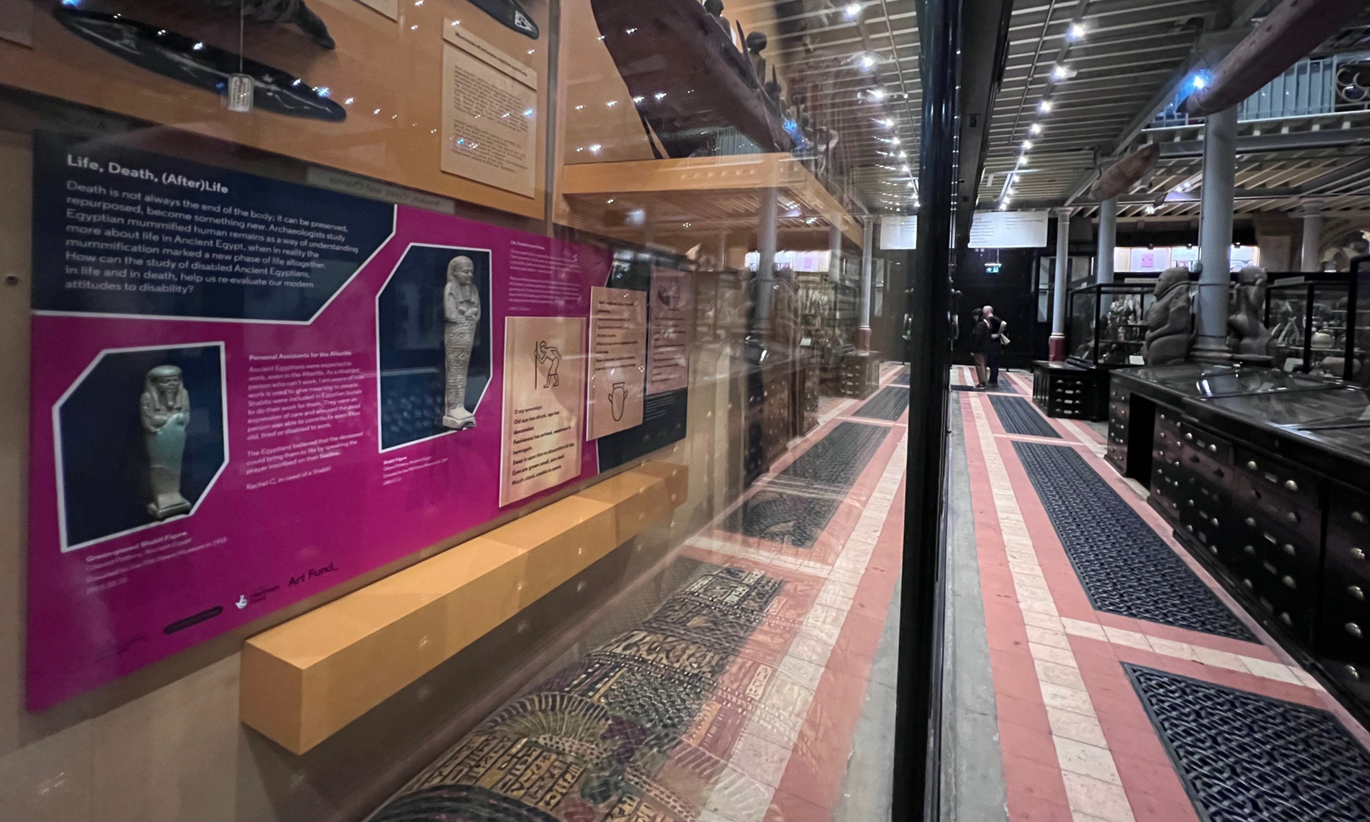 This display also includes an artwork of onion-dyed paper printed with excerpts from the Teachings of Ptahhotep, (Ancient Egyptian, Middle Kingdom). The text is provided below with the translation by Stephen Quirke, available online via the Digital Egypt resource provided by the Petrie Museum of Egyptian and Sudanese Archaeology.