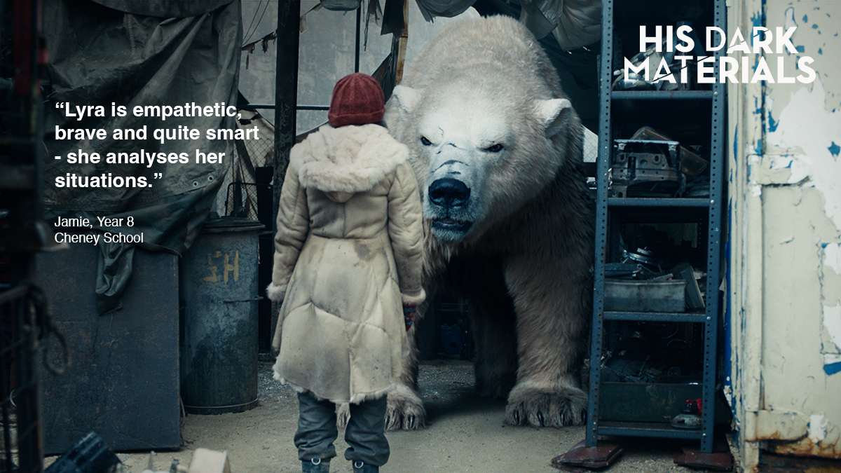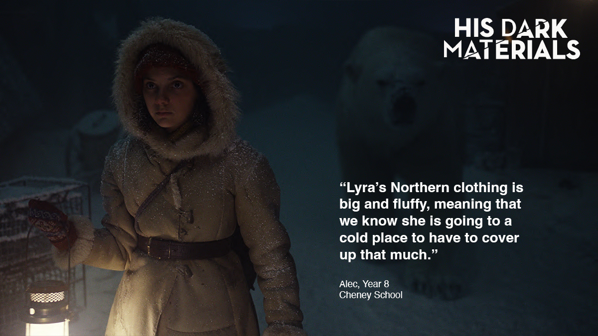 To coincide with these film objects going on display, the museum is running schools sessions linked to His Dark Materials. These encourage students to reflect on the literary themes and characters in Philip Pullman's novels alongside usual interactions with the collections in the Museum and thinking about the many worlds represented through objects within the displays. Some quotes from young people about the character of Lyra are shared below. You can click on the images to enlarge them.