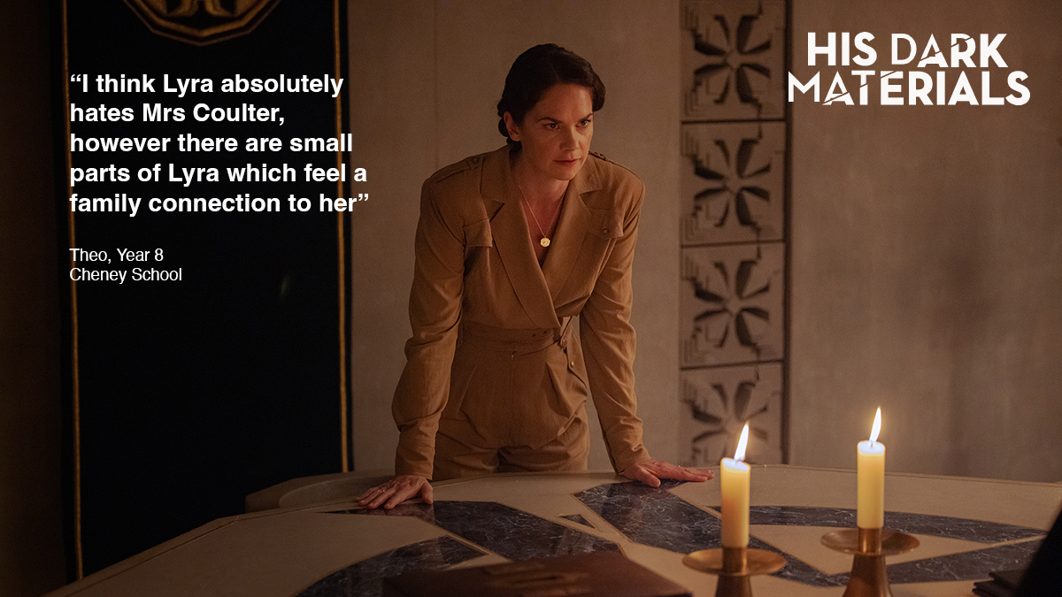 At first Lyra likes Mrs Coulter but then she starts to hate her and then at Bolvangar Mrs Coulter’s experiment nearly kills Lyra.