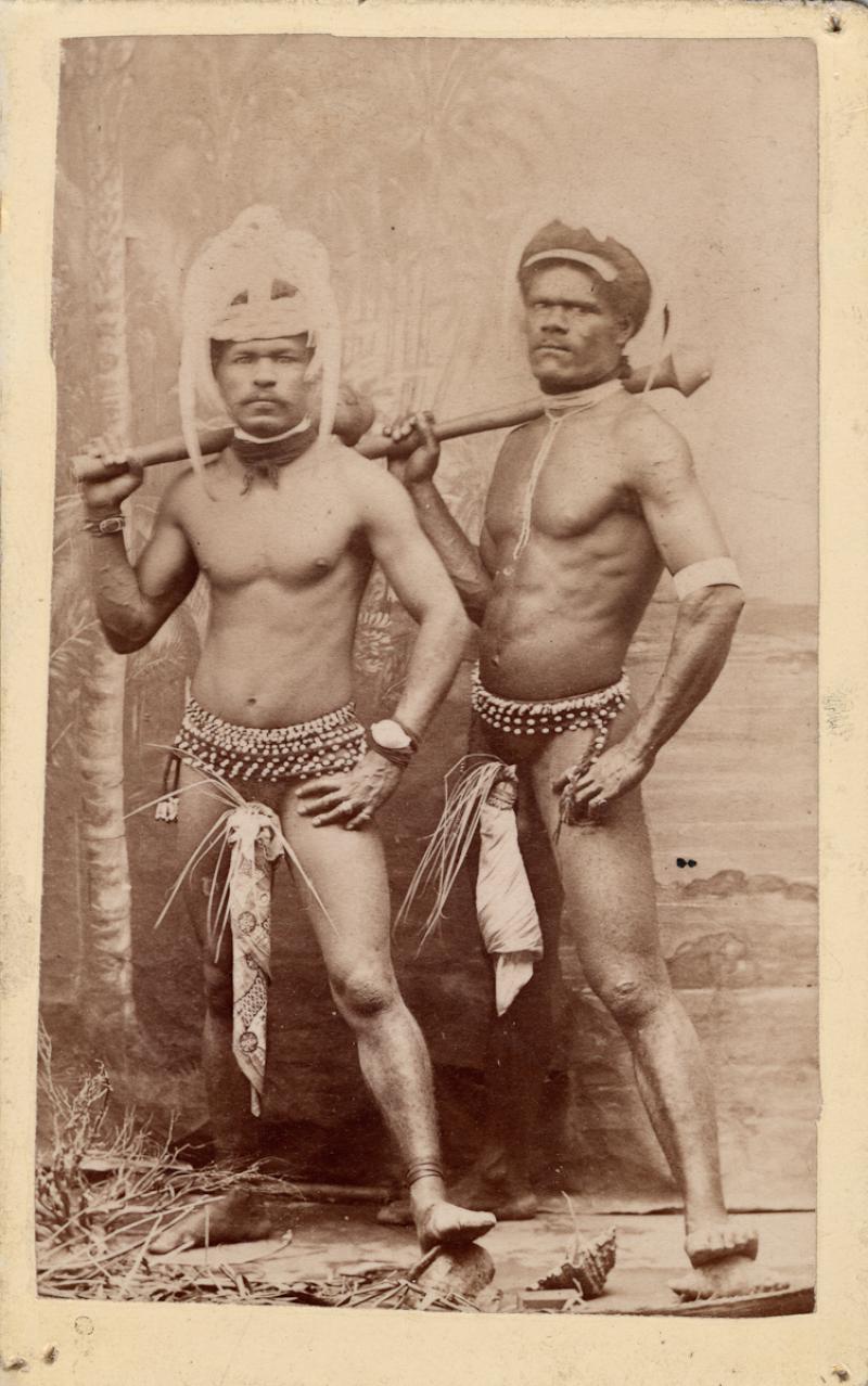 The Museum’s Oceania collections are internationally significant. Although not the largest – with around 10,000 items – it is extremely rich in early images and documentation. It includes a collection of photographs taken for C.F. Wood in Fiji, Samoa and the Ellice Islands in 1873, as well as a well-documented collection by William A.D. Acland from expeditions to Vanuatu and Samoa in the 1880s. The 19th-century material also includes examples from many important colonial photographers, such as Thomas Andrew in Samoa, Josiah Martin in New Zealand and the Dufty Brothers in Fiji. There is a group of images from the Burton Brothers’s 1885 'Coral Islands' series (from Fiji, Tonga and Samoa) with original stamped mounts. There are also important field collections by Diamond Jenness (Massim, 1911–12), A.C. Hocart (Fiji, c.1910), and Beatrice Blackwood in Papua New Guinea, New Britain and the Solomon Islands (1930s). The Museum also holds one of the most significant photograph and manuscript collections relating to the New Zealand guide and personality Makereti (1873–1930), who was associated with the Museum.