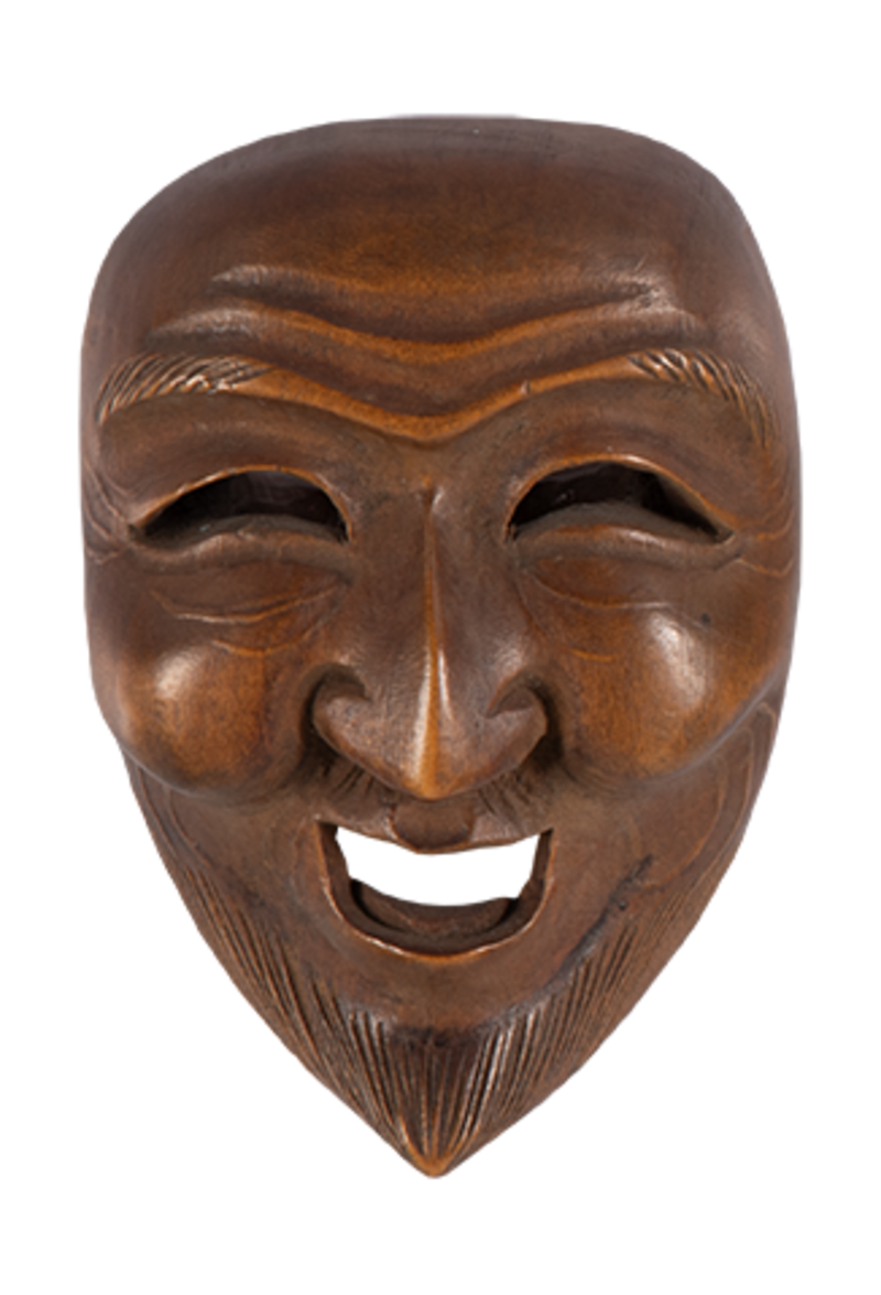 Netsuke of a mask of a man with a pointed beard. Wood, Japan (made before 1920). Donated the Pitt Rivers Museum in 1980. PRM 1980.34.161