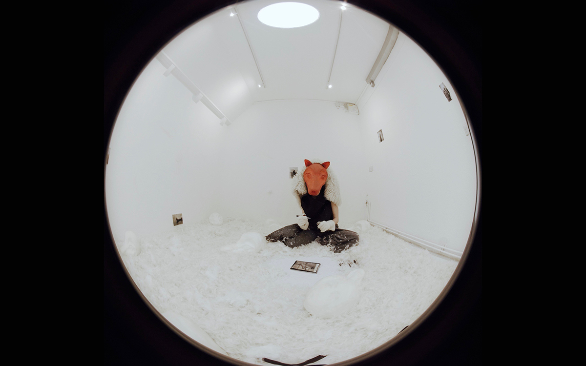 In November 2019 Gleizer gave a performance (Anthropometamorphosis) at Mansfield College where contemporary artist and master of traditional Evenki song, Galina Veretnova appeared live, via WhatsApp and wireless projection. Veretnova sang and spoke to the Oxford audience directly, giving voice to Evenki perspectives, in an exchange facilitated by Irgichit’kan, the performance character developed by Gleizer in Evenkia.